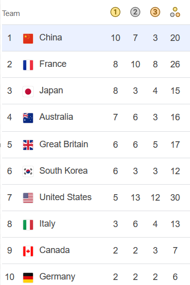 பாரிஸ் ஒலிம்பிக் போட்டியில் தற்போது முன்னணியில் உள்ள நாடுகள்: