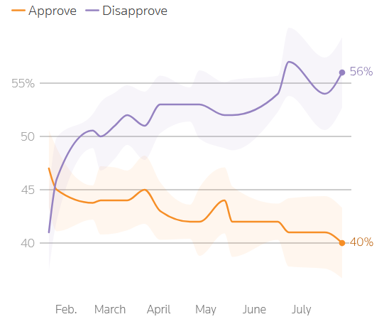 ரம்புக்கான ஆதரவு தற்போது 40% ஆக உள்ளது. இது ரம்பின் இரண்டாம் ஆட்சிக்காலத்தில் அவருக்கு கிடைக்கும் மிக குறைந்த ஆதரவு.